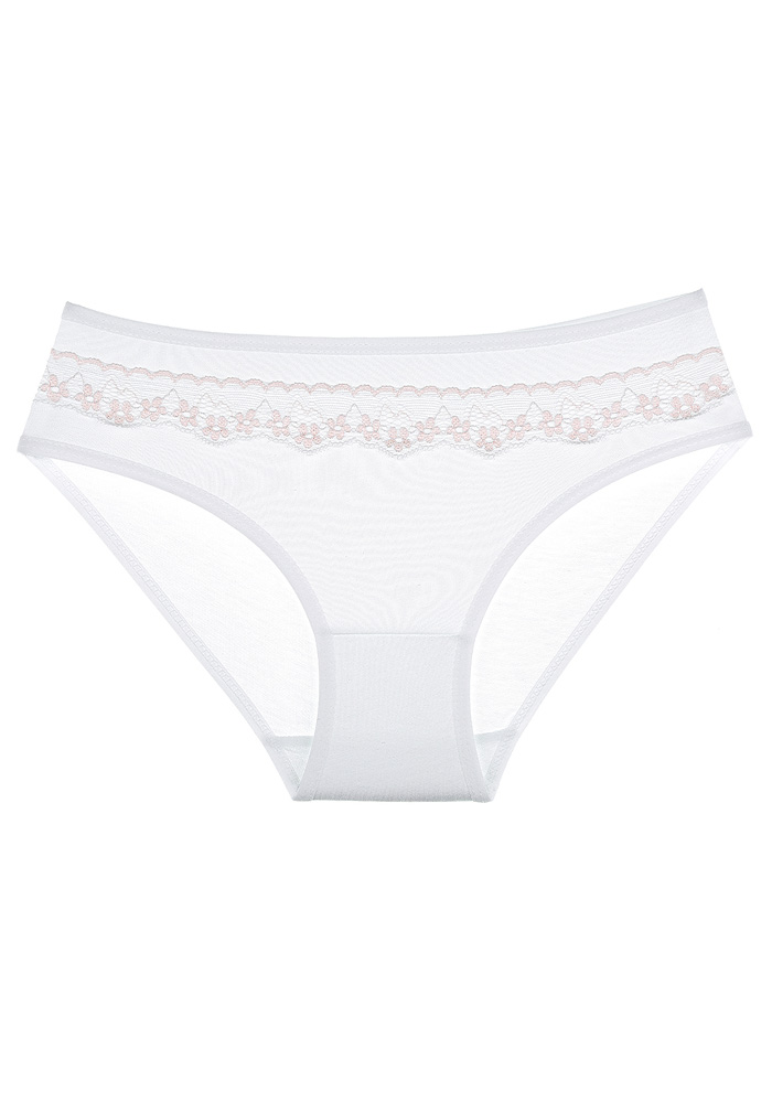 Подростковые трусики, белого цвета, для девочки.Выполнены из мягкого, нежного, гипоаллергенного материала, декорированы кружевом.