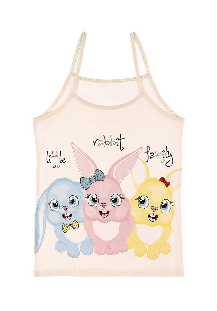 Детская майка для девочки на тонких бретелях. Спереди украшены рисунком. Цвета ассорти.