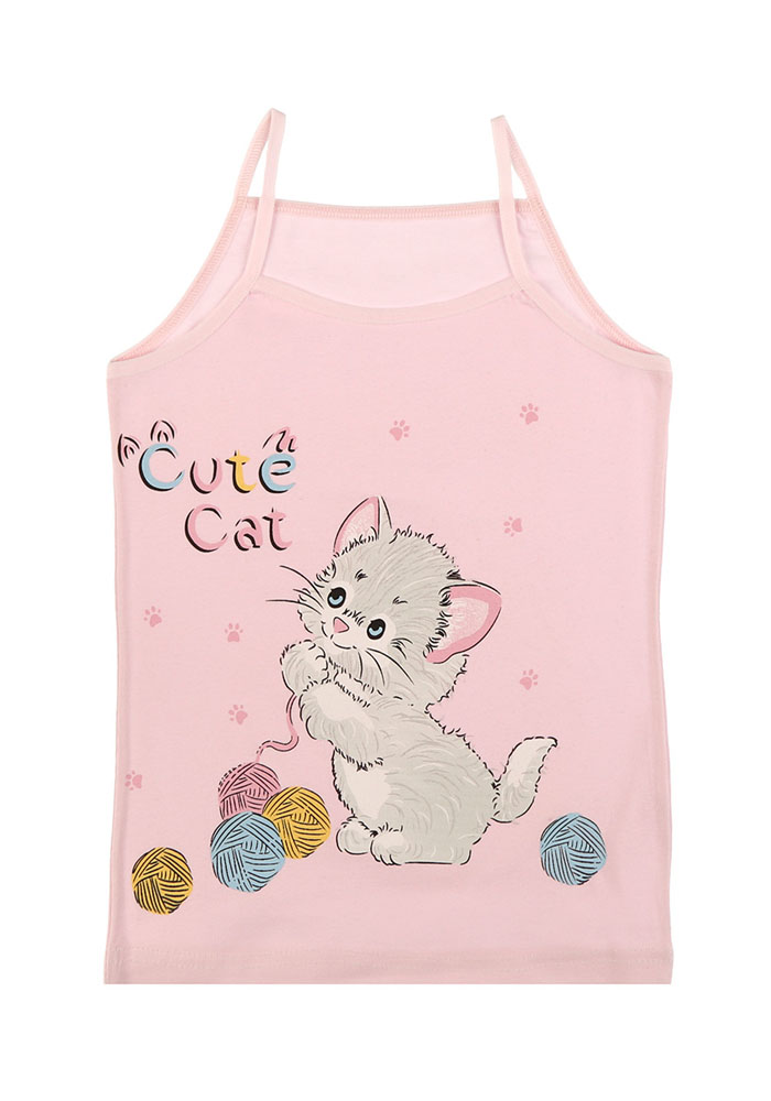 Детская майка для девочки на тонких бретелях. Спереди украшены рисунком. Цвета ассорти.