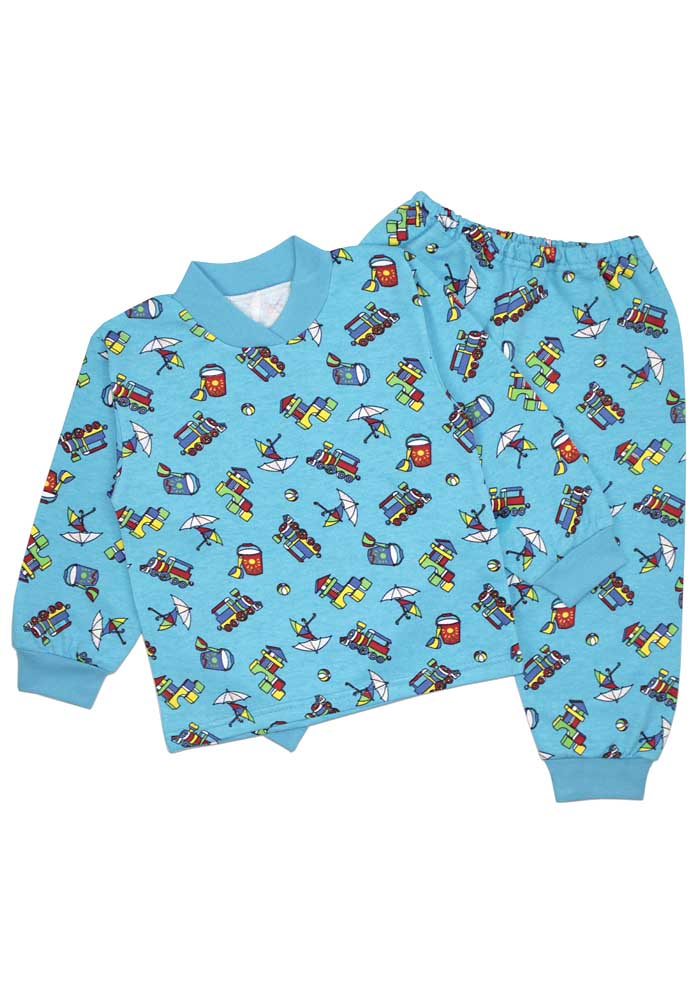 Пижама детская с длинными рукавами. Манжетики на рукавах и на штанинах снизу. V-образный вырез воротника помогает легко одеть пижаму через голову ребенку.