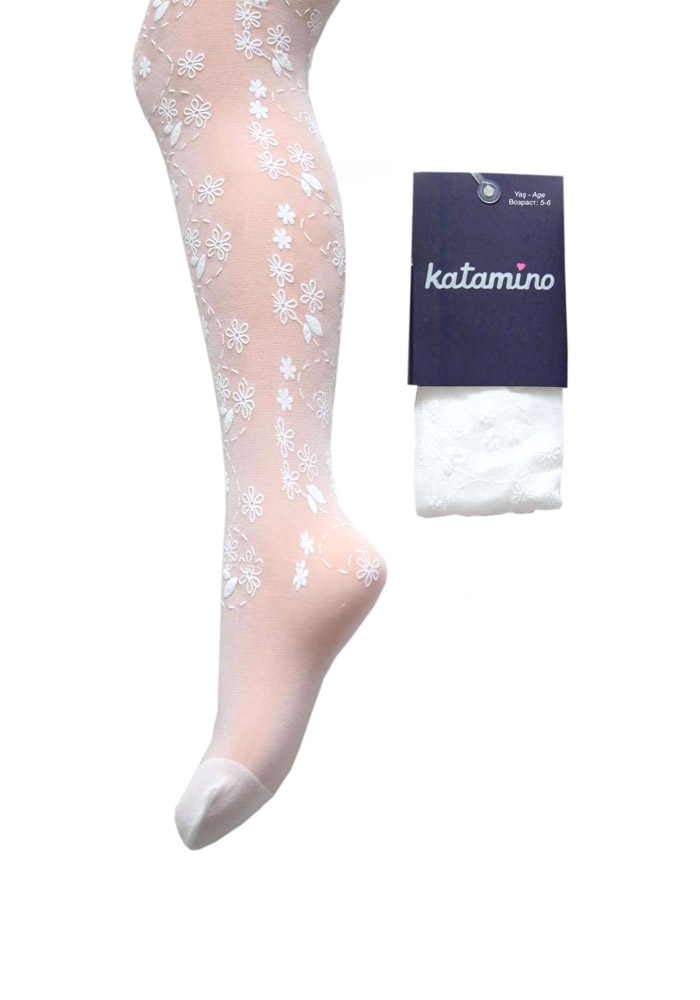 Белые прозрачные колготки с укрепленными пальчиками. Украшены узором из нежных цветов снежно-белого оттенка.