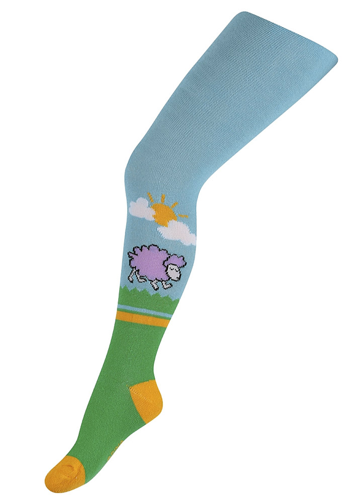 Колготки для девочек, с рисунком овечки на голени и имитацией цветного носочка очень комфортные в повседневной носке благодаря высокому содержанию хлопка.
