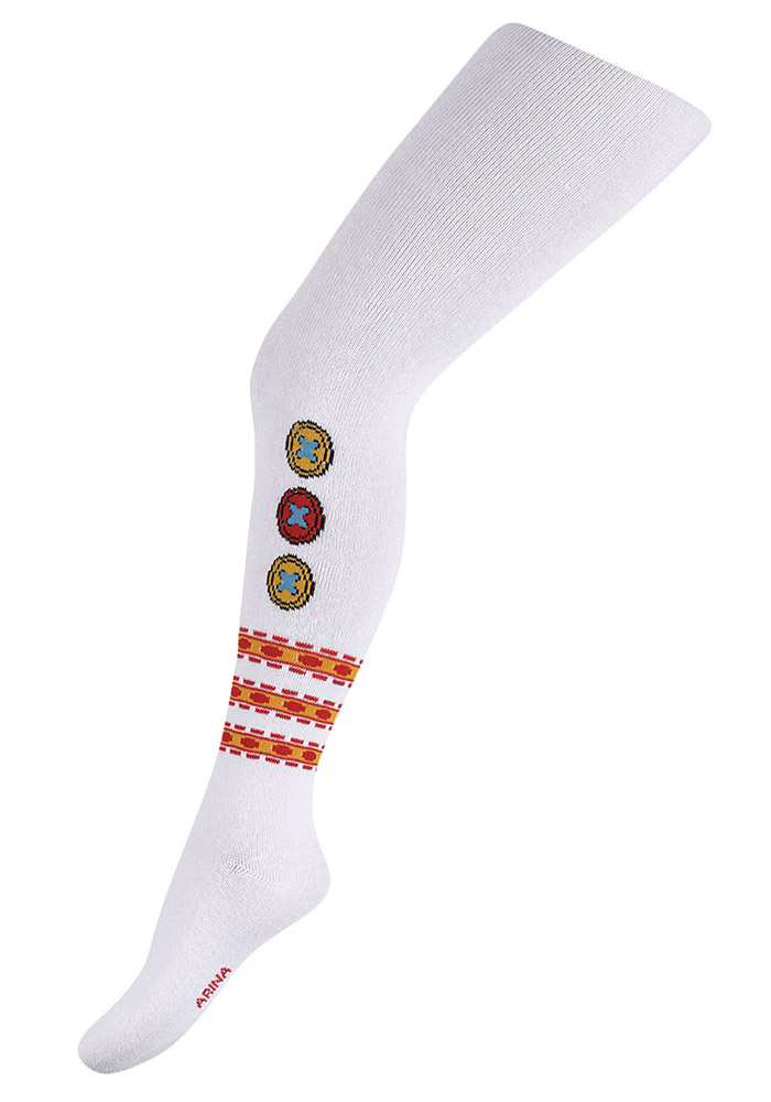 Колготки для девочек с рисунком пуговиц на голени с большим содержание хлопка, это делает колготки мягкими и комфортными в носке.