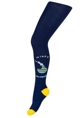 Колготки для мальчиков темно-синие с рисунком в виде мультяшного пароходика в нижней части изделия. Пяточка и носочек контрастируют жёлтыми вставками.. Изготовлены из качественной и практичной ткани, в которой присутствует большой процент хлопка, сохраняющий тепло, и эластичные полиамидные нити и эластан, благодаря чему изделие не сползает и плотно сидит на ножках. Широкая резинка и плоские швы не натирают и не причиняют дискомфорт ребенку.