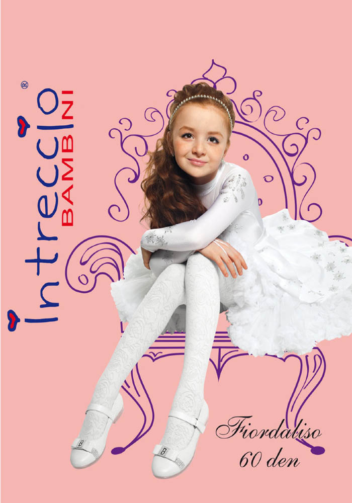 Плотные непрозрачные колготки для девочек плотностью 60 den из микрофибры с тканым абстрактным рисунком в виде больших цветов, плоскими швами, хлопковой ластовицей и укрепленным мыском.