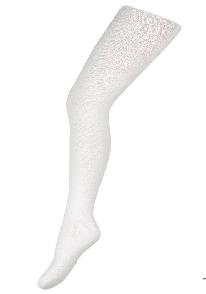 Однотонные классические детские колготки белого цвета, с большим содержанием хлопка.