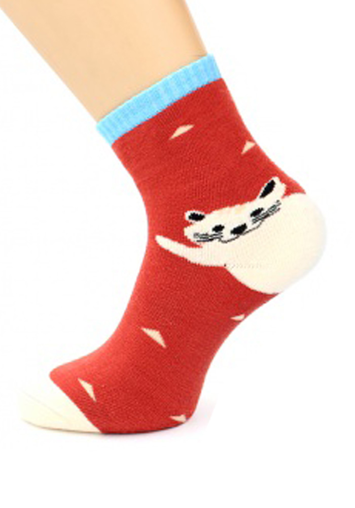 Детские носки, с махрой ихнутри. На пятке рисунок "Кошечка".