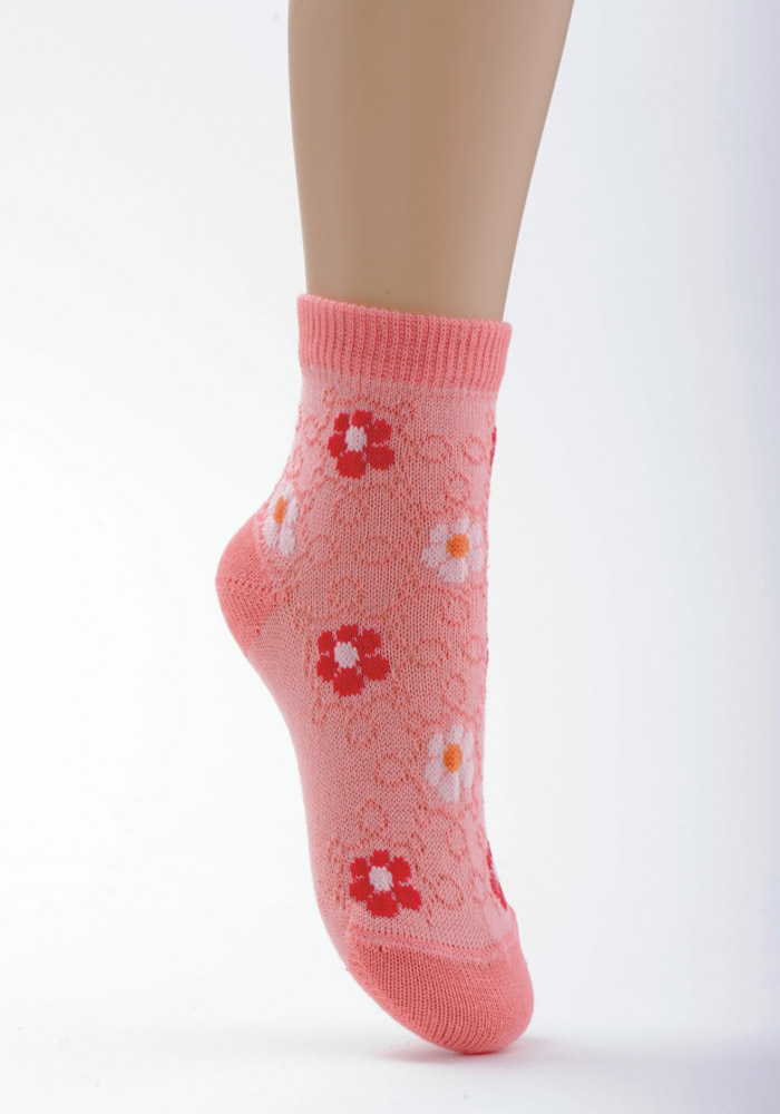 Летний носок с двойным бортом, рельефное переплетение с вышивкой, широкая резинка.