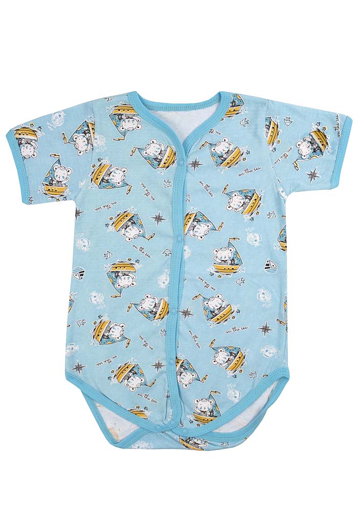 Боди из материала кулирка с короткими рукавами на кнопочках по всей длине. Снизу три кнопки для переодевания подгузника.