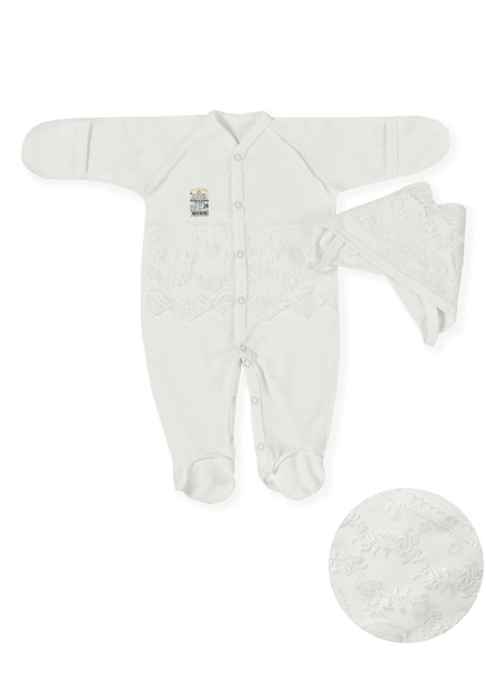 Комплект на выписку белого цвета с кружевом (интерлок-пенье).