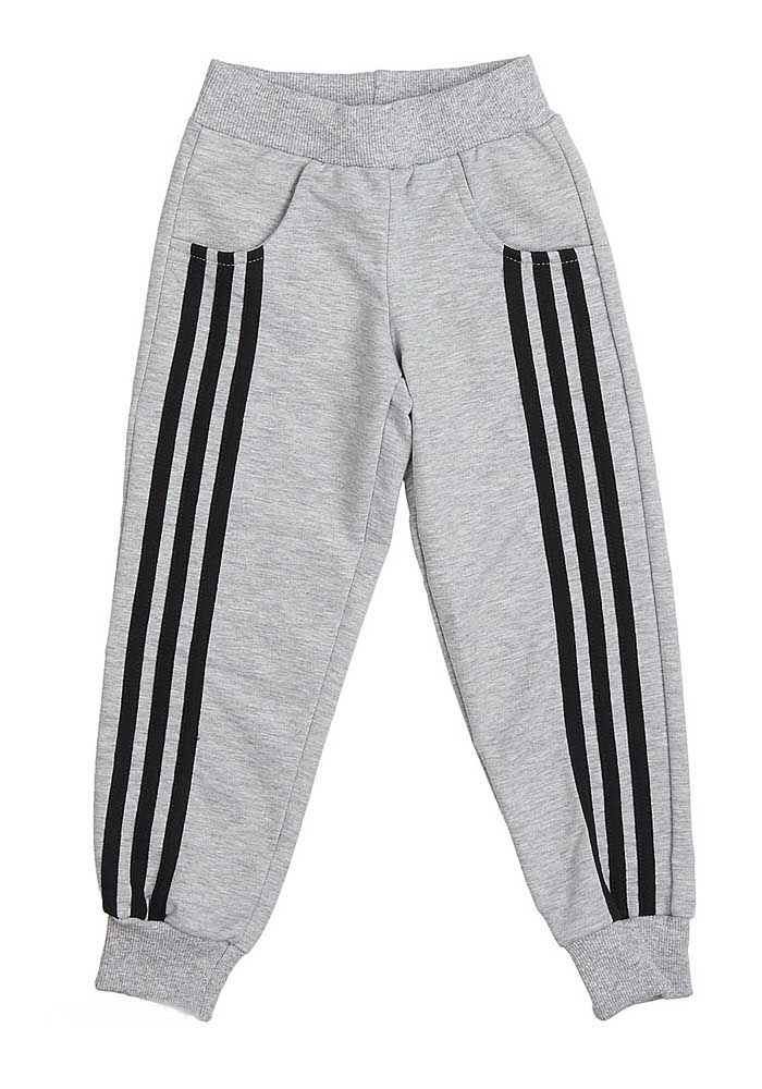 Плотные детские брючки на широкой резинке с лампасами, с карманами, внизу на манжетах.