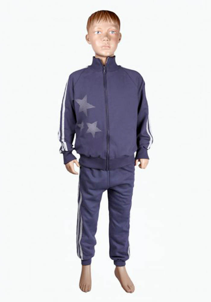 Костюм спортивный. Состоит из 2 предметов (куртка на молнии, на рукавах манжеты + штаны на резинке, на ножках манжеты).