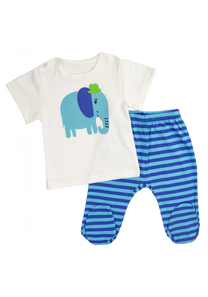 Детский комплект, состоит из футболки с принтом и ползунков.