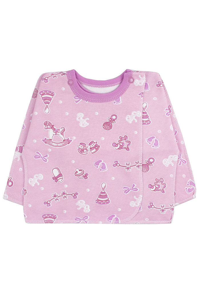 Распашонка очень комфортна для малыша – все швы выполнены наружу. Модель цельнокроенная, застегивается на две кнопки на горловине, неглубокий запах. На рукавах - клапаны, позволяющие ручкам ребенка быть открытыми или закрытыми.