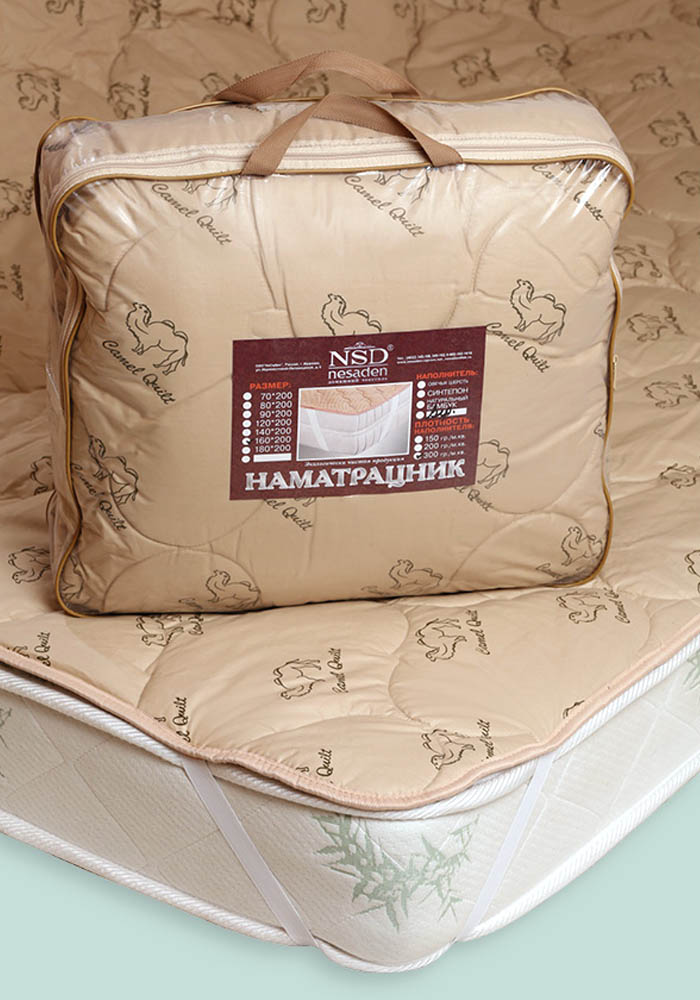 Верблюжья шерсть - традиционный, всем известный наполнитель, обладающий полезными свойствами. Наматрацник с таким наполнителем удерживает и аккумулирует тепло, обладает и терморегулирующими свойствами во время сна, к тому же поглощает излишки влаги и тем самым поддерживает нормальную температуру тела.