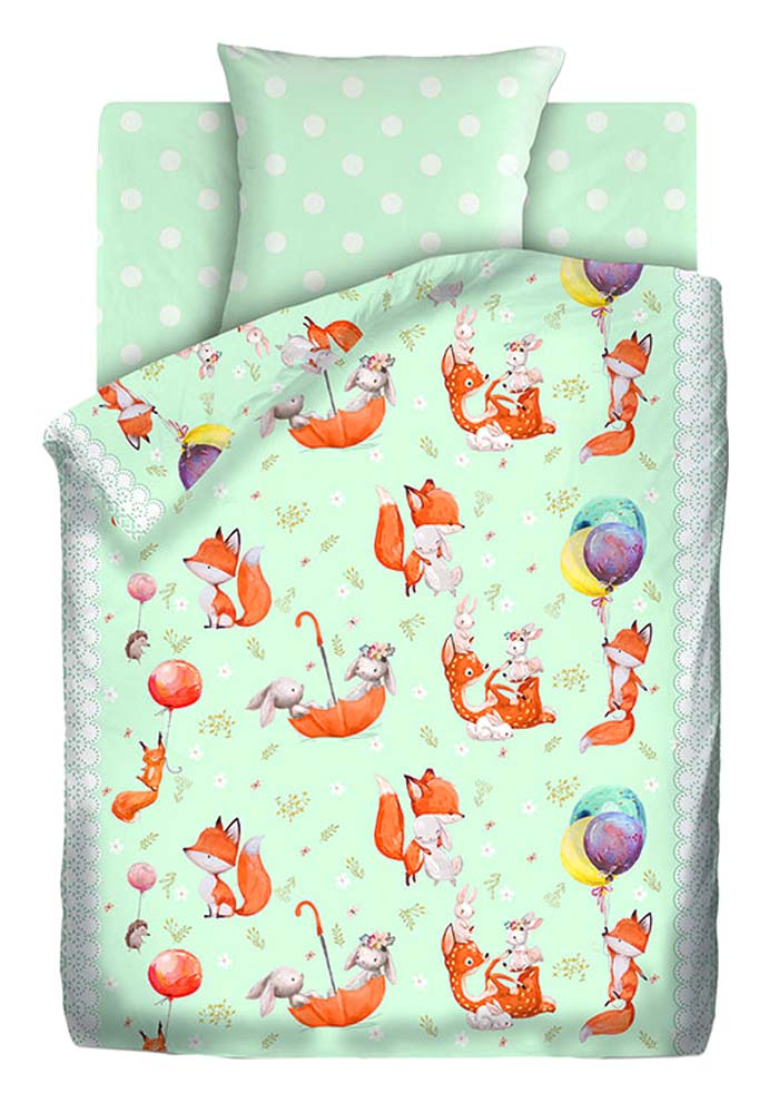 Комплект постельного белья "Лисята " изготовлен исключительно из высококачественной бязи (100% хлопка) российского производства с применением прочных и экологически чистых красителей.