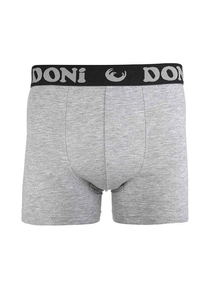Мужские трусы боксеры (шорты) на широкой резинке с надписью в поясе и рисунком "меланж" (с поперечными полосками разной длины темнее по оттенку), спереди двойная вставка.