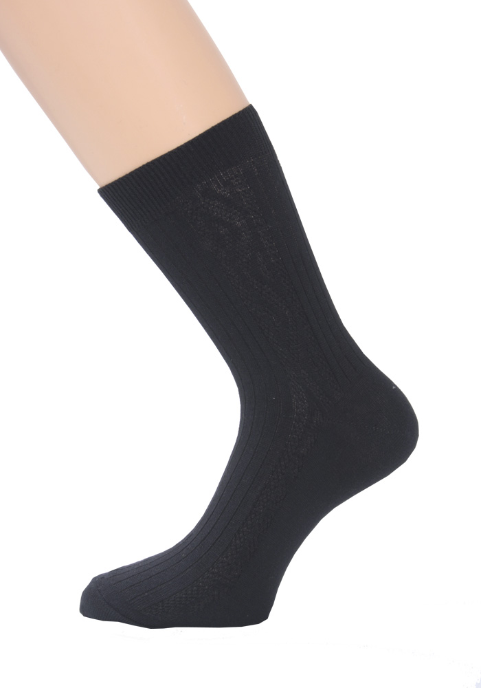 Носки мужские из хлопка с однобортной резиной, с рельефным рисунком и классической длиной паголенка.