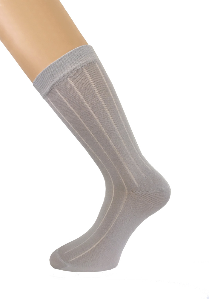 Гладкий носок из хлопка с высоким двойным бортом и продольными полосами (перекидная платировка).