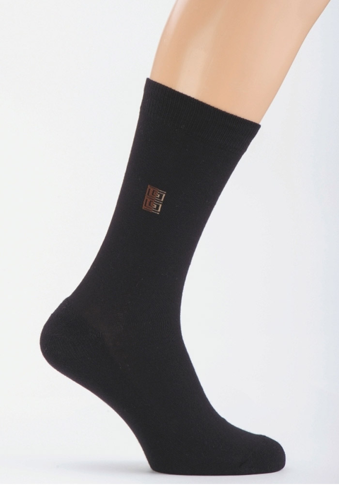 Высокие зимние носки с плюшевым следом и мелким рисунком на паголенке.