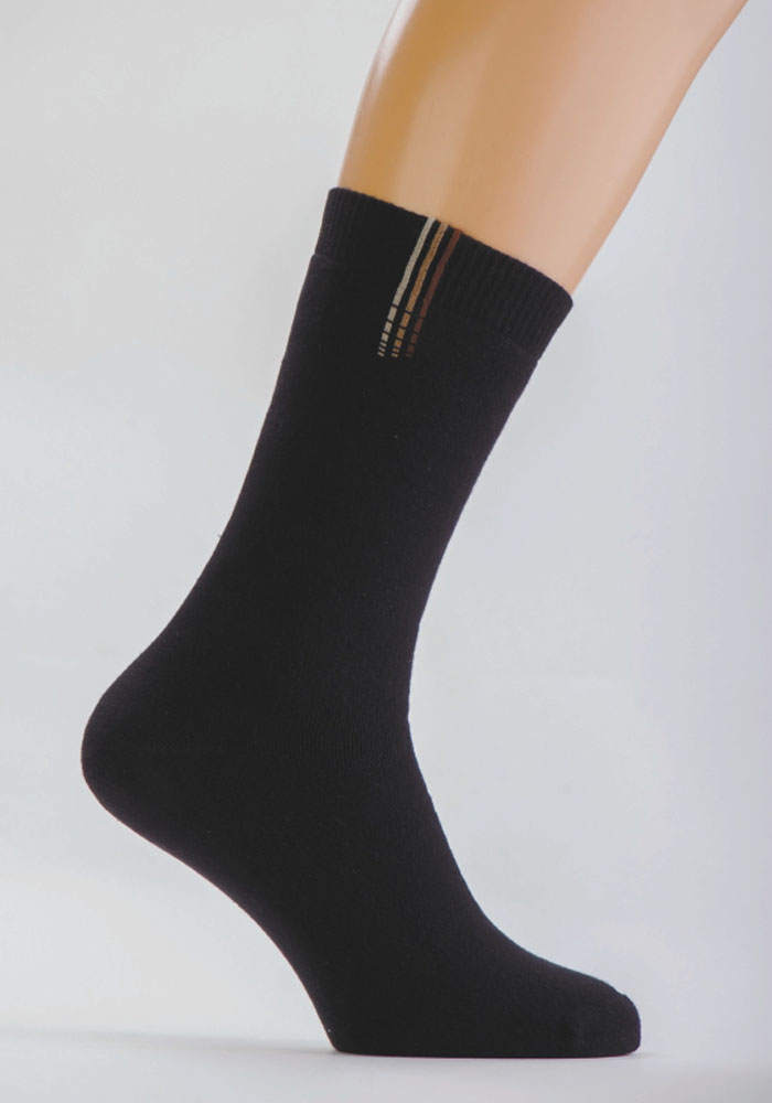 Плюшевый носок с двойным бортом, кетельным швом и геометрическим рисунком на паголенке.
