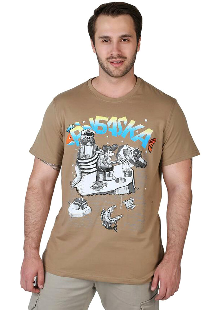 Футболка полуприлегающего силуэта с принтом на полочке, коротким рукавом. Горловина круглая, обработана обтачкой. Низ изделия и низ рукавов обработаны швом "в подгибку".