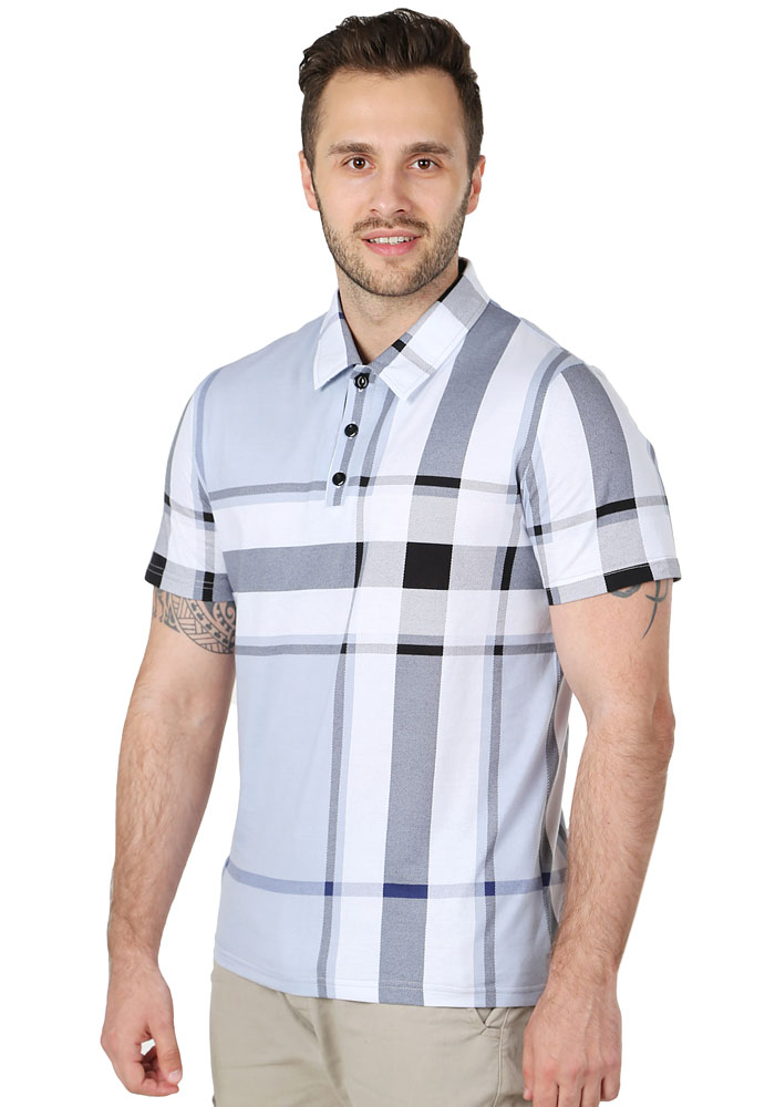 Футболка полуприлегающего силуэта с коротким втачным рукавом, отложным воротником, на планках с застежкой на петли и пуговицы. Нижняя планка выполнена из отделочной ткани.