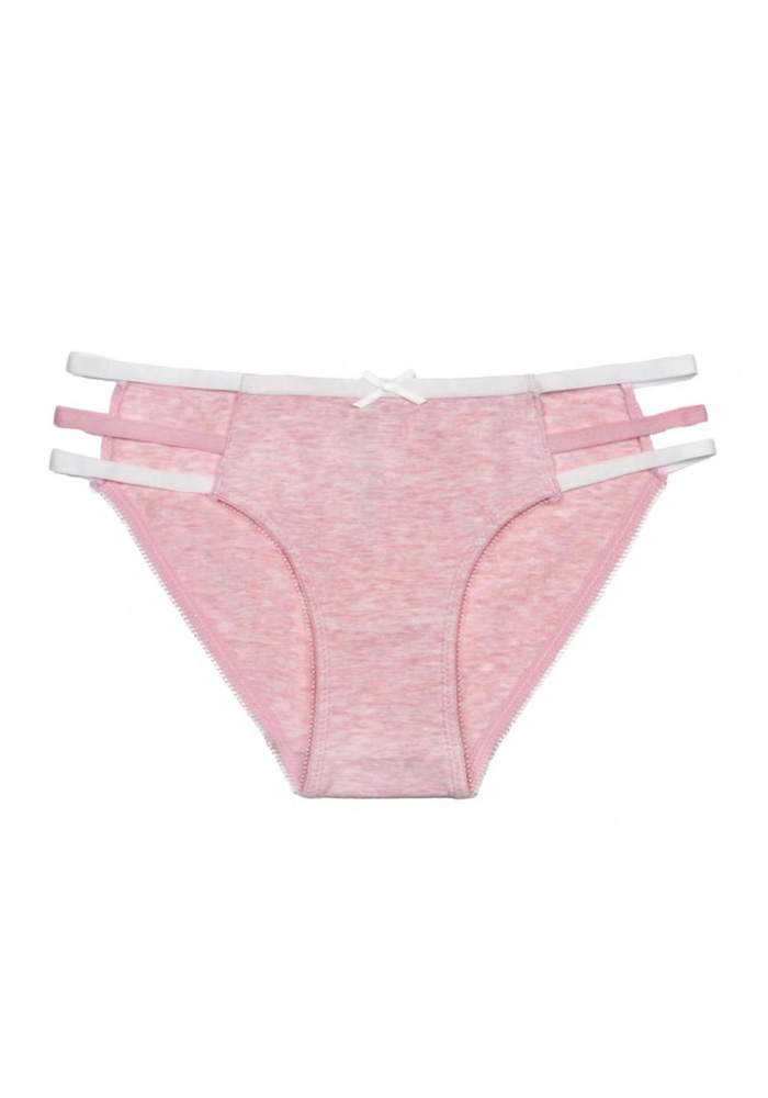 Женские трусы из однотонного полотна. Изделие украшено по бокам резинками.