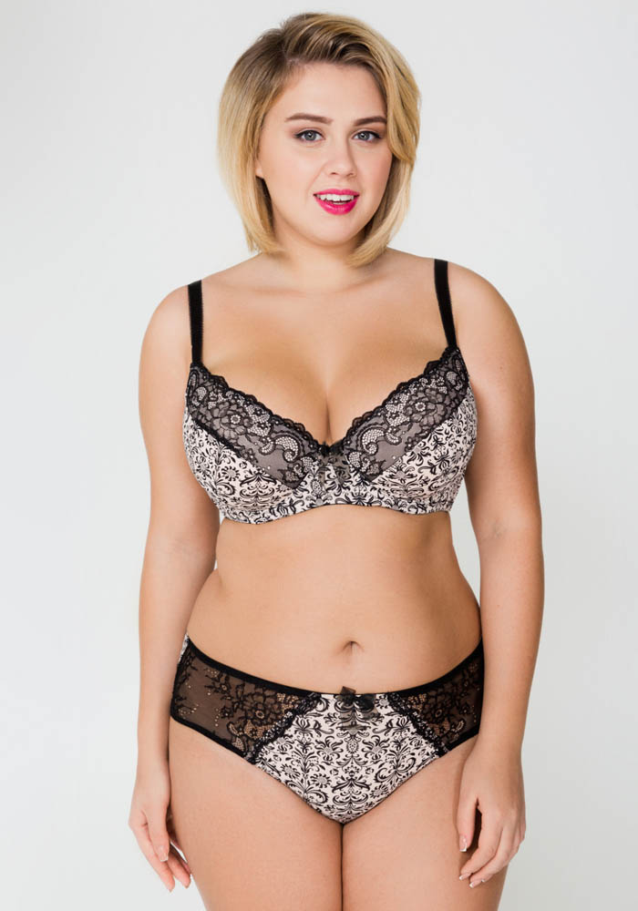 Трусики классические выполнены из принтованного эластичного полотна и кружева. Передняя деталь декорирована бантиком.