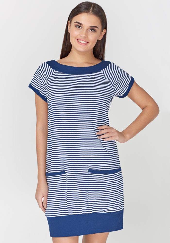 Ночная сорочка из эластичного хлопкового полотна. На передней детали выполнены карманы. Горловина обработана обтачкой.