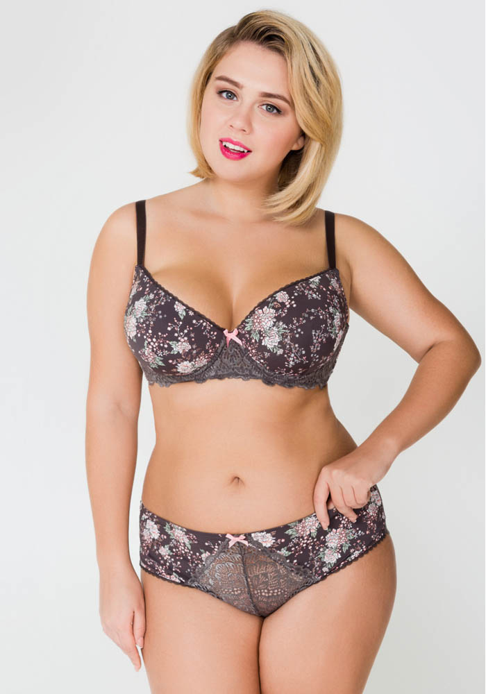 Трусики классические выполнены из эластичного принтованного полотна и кружева, декорированы эластичной лентой с фестонами. Передняя деталь декорирована бантиком.