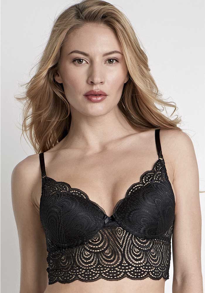 Бюстгальтер классической формы на косточках, выполнен из эластичного кружева. Формованные чашки с Push-up для размеров 70AB, 75ABC, 80B и без Push-up для размеров 70CD, 75DE, 80CDE, 85BCDE. Центральная деталь декорирована бантиком. Бретели регулируемые, не съёмные. Небольшой фигурный вырез у застежки сзади.