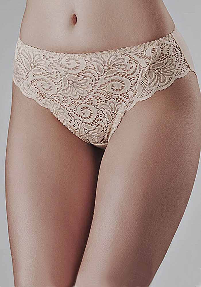 Трусы из эластичного кружева, эластичного кружевного полотна и эластичного трикотажного хлопкового полотна, со средней линией талии.