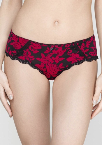Трусики-боксеры выполнены из эластичного принтованного полотна, декорированы узким кружевом. Линия талии декорирована эластичной лентой с фестонами. Передняя деталь декорирована бантиком.