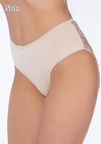 Трусы слип-макси из хлопка с эластаном, сзади объемные кружевные вставки, края отделаны ажурной тесьмой, на фронте аппликация-бант.