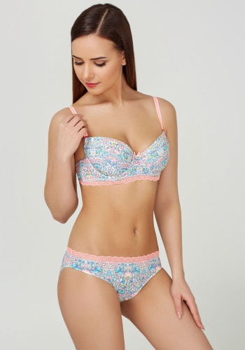 Трусики классические выполнены из эластичного принтованного хлопкового полотна, деорированы узким кружевом. Задняя деталь декорирована вырезом и бантиком.