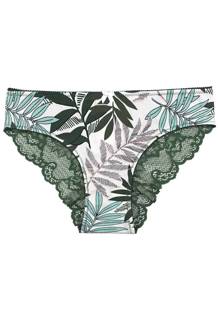 Стильные трусы-слипы. Передняя деталь выполнена из принтованного полотна, задняя деталь выполнена из кружева.