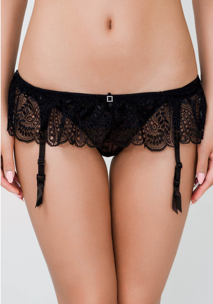 Пояс для чулок из эластичной сетки и кружева. Передняя деталь декорирована бантиком. Застежка выполнена на задней детали.