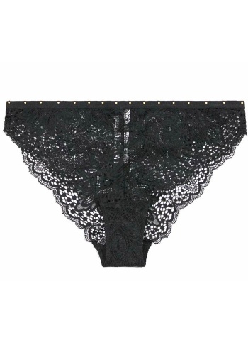 Женские кружевные трусики темно-зеленого цвета.
