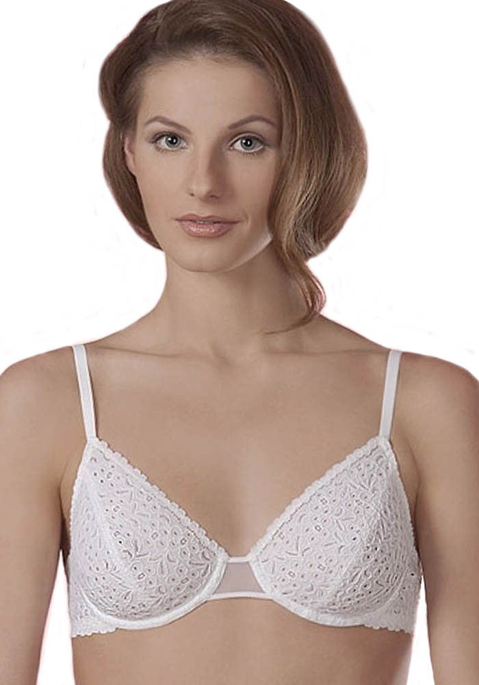 Бюстгальтер на каркасах из эластичного кружева с выраженной объемной фактурой. Модель выполнена с тонкими изящными бретелями.