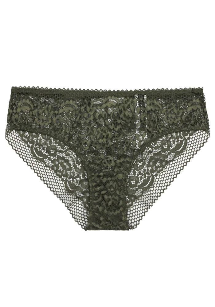Кружевные трусы темно-зеленого цвета.
