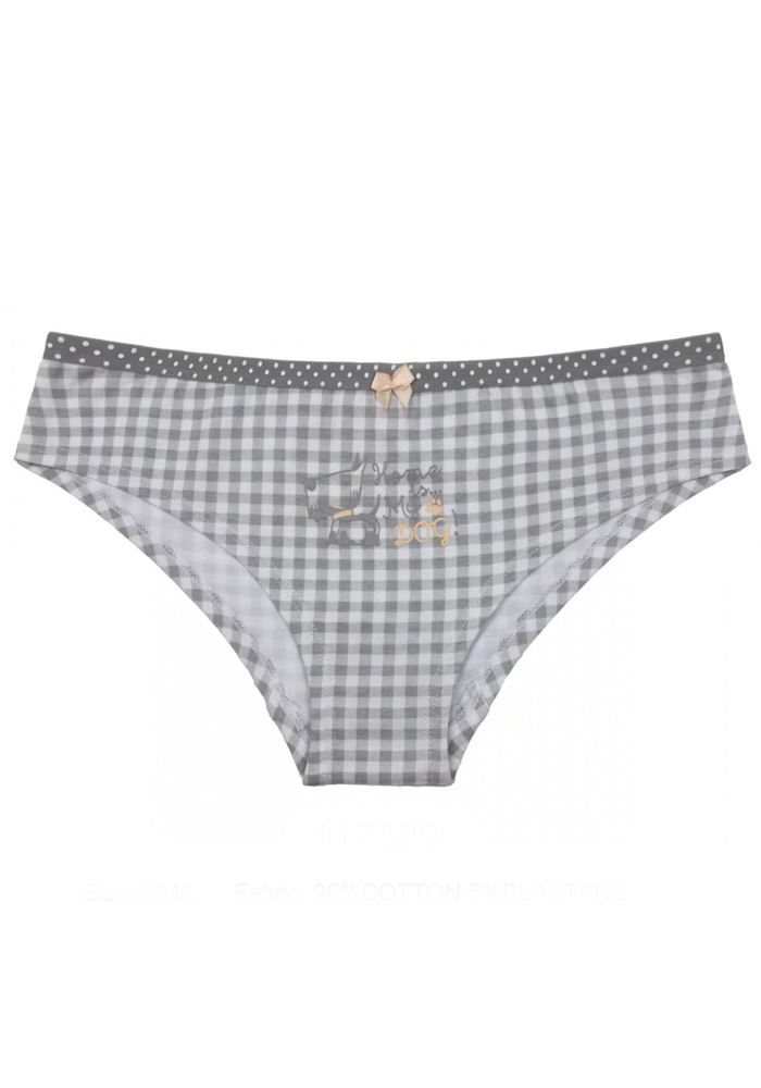 Женские трусики из набивного полотна, декорированы атласным бантиком.
