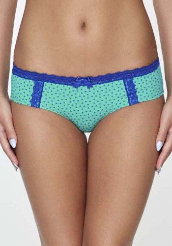 Трусики-боксеры выполнены из эластичного принтованного полотна и узкого кружева. Передняя деталь декорирована бантиком.