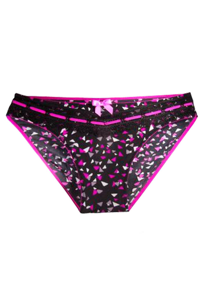 Женские трусы-слипы черного цвета с розовой тесьмой.