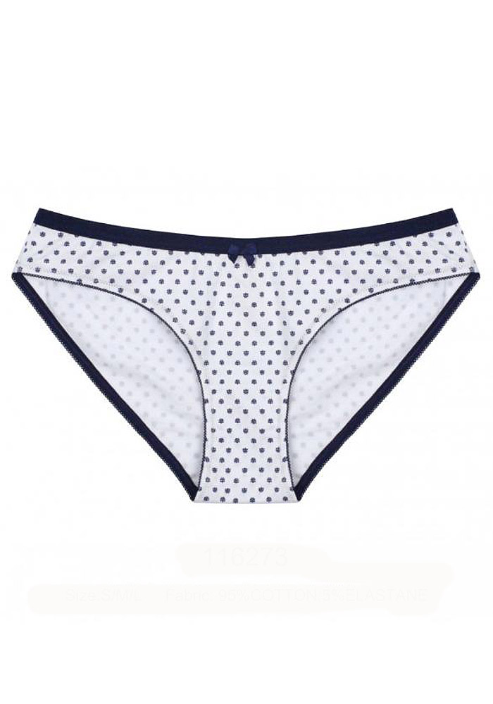 Женские трусики из набивного полотна, декорированы атласным бантиком.