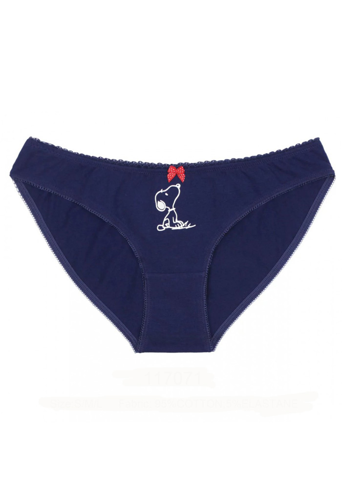Женские трусики из однотонного полотна, декорированы атласным бантиком и принтом.