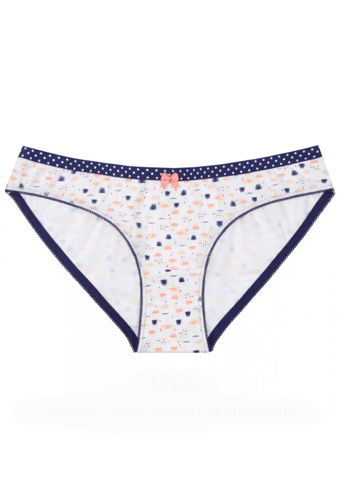 Женские трусики из набивного полотна, декорированы атласным бантиком.