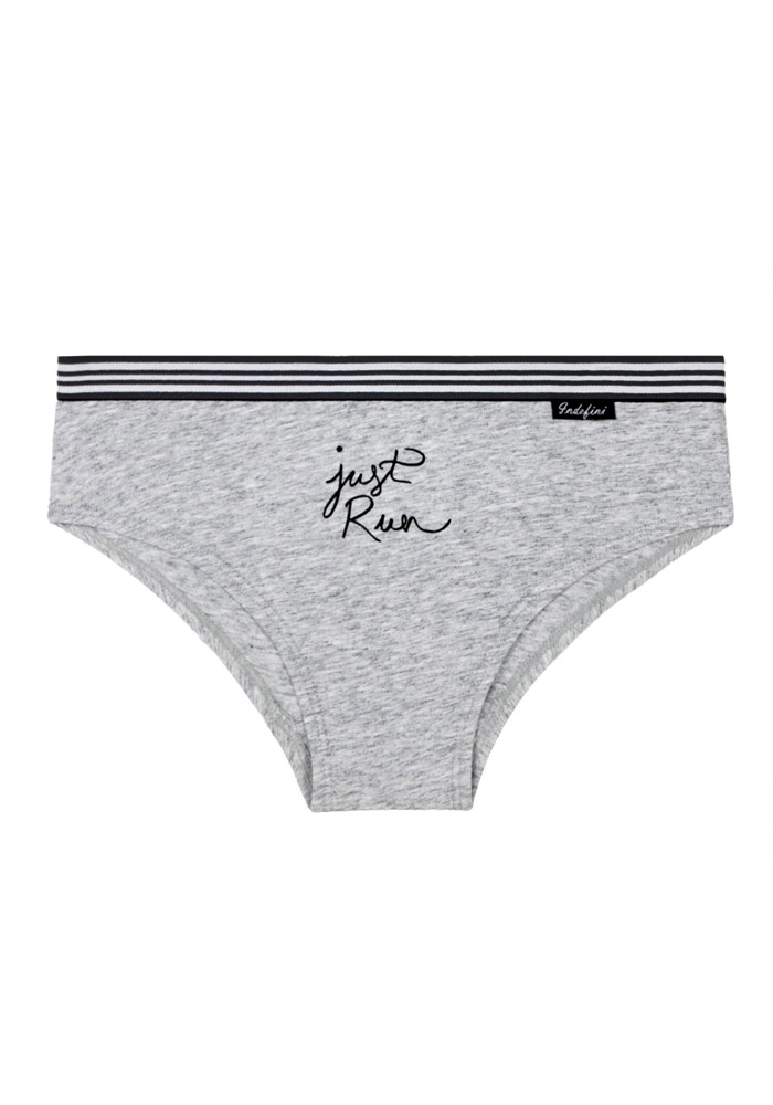 Женские трусы из меланжевого полотна с принтом и широким поясом-резинкой.