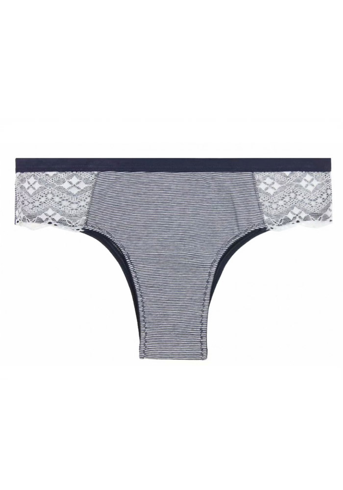 Женские трусы из принтованного полотна, сбоку украшены кружевной вставкой. .
