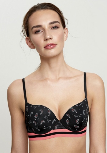 Бюстгальтер классической формы с формованной чашкой с Push-up для размеров 70AB, 75ABC, 80B и без Push-up для размеров 70C, 75DE, 80CDE, 85BCD. Детали бюстгальтера выполнены из эластичного полотна. Бретели эластичные, не съёмные.